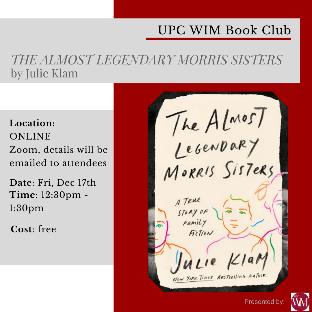Our December 2021 book club pick is The Almost Legendary Morris Sisters by Julie Klam. Meeting on Friday, Dec 17th, @ 12:30pm ONLINE through Zoom.